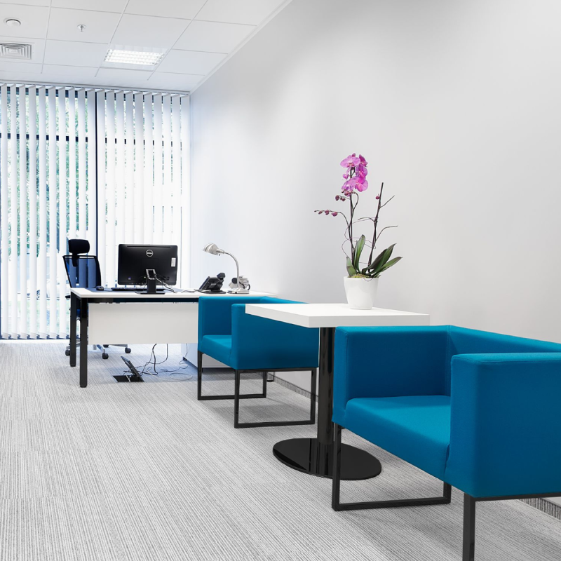 Серия Fredi - кубични форми и остри линии, допълващи модерния офис с места за срещи и разговори.