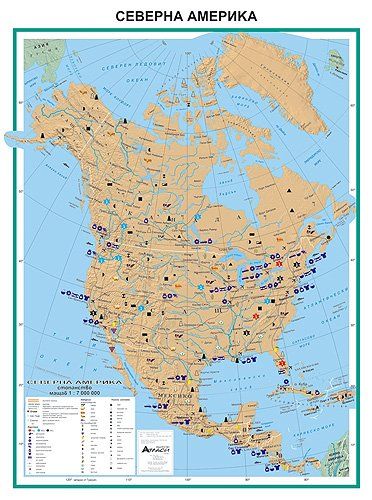 Стенна карта „Северна Америка - стопанство" - учебно помагало за всеки кабинет по география!