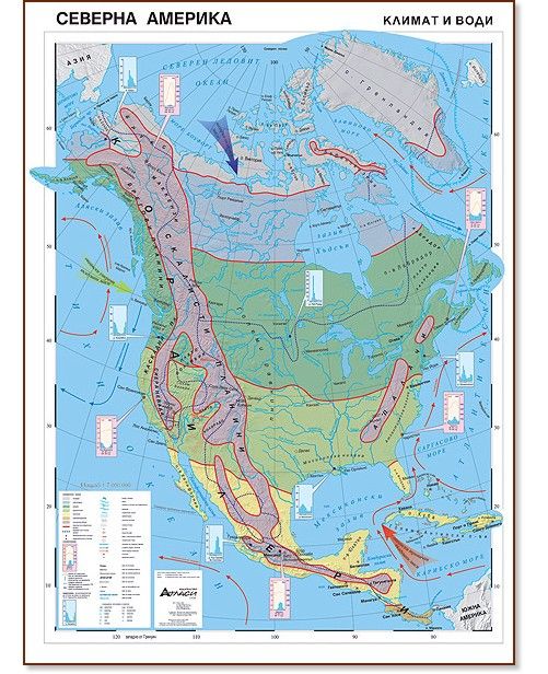 Стенна карта „Северна Америка - климат и води" - учебно помагало за всеки кабинет по география!