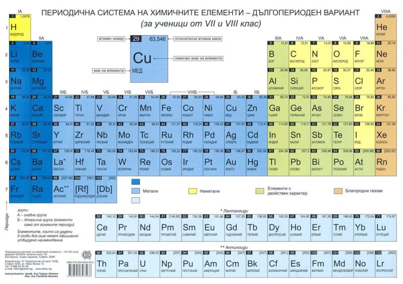 Стенно табло: Периодична система на химичните елементи, дългопериоден вариант - учебно помагало за всеки кабинет по химия!