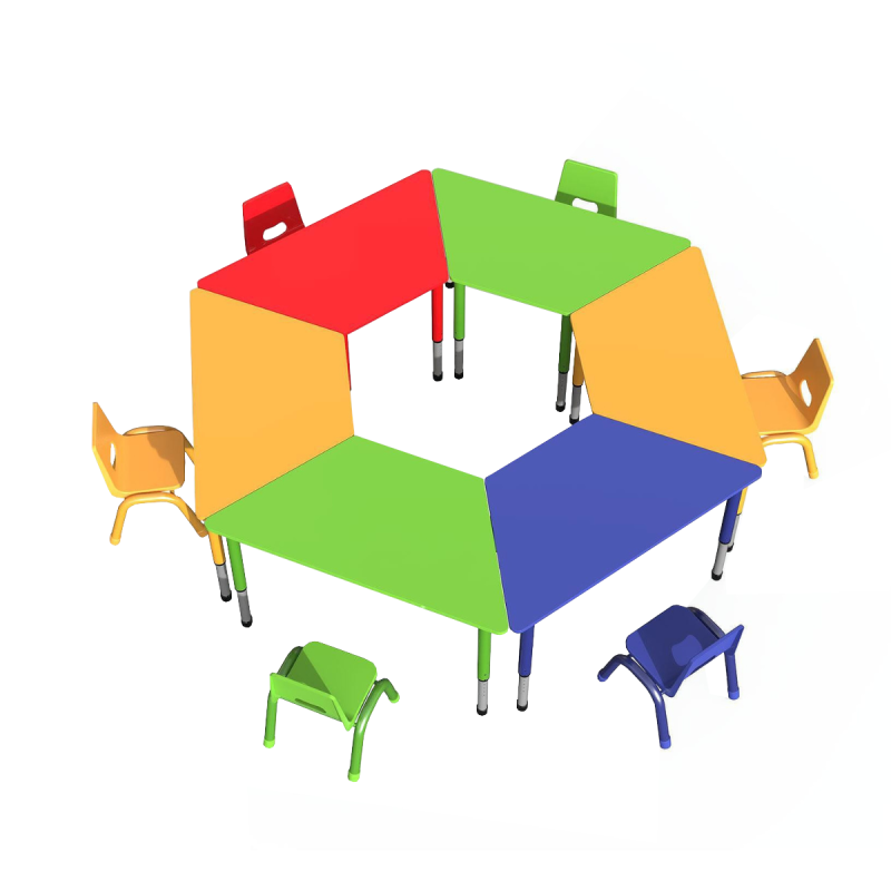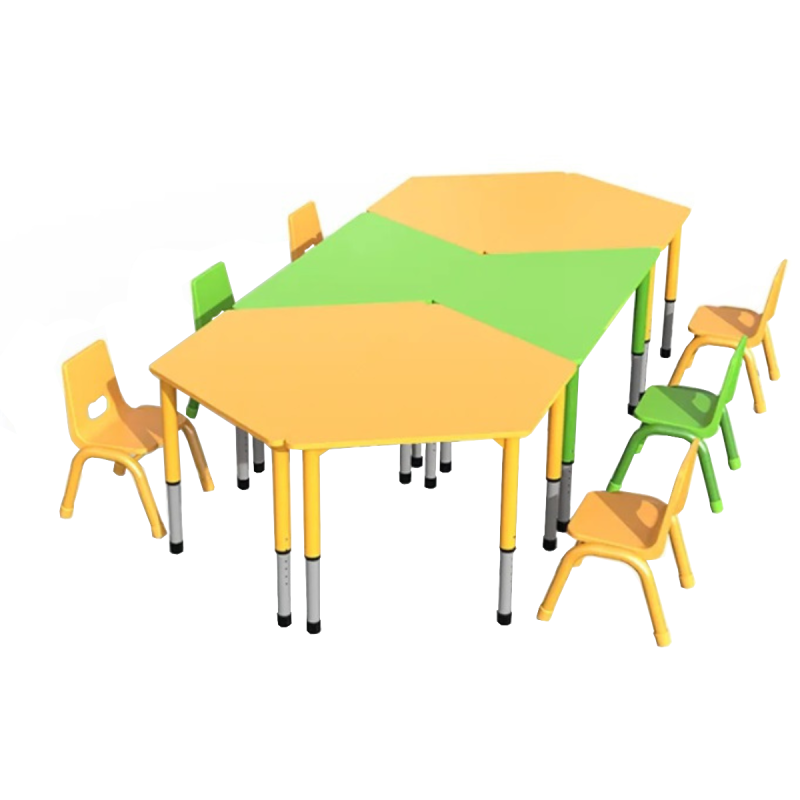 Висококачествена регулируема двойна модулна маса с форма на трапец в четири цвята - за различни по форма и цвят конфигурации за съвременната класна стая!