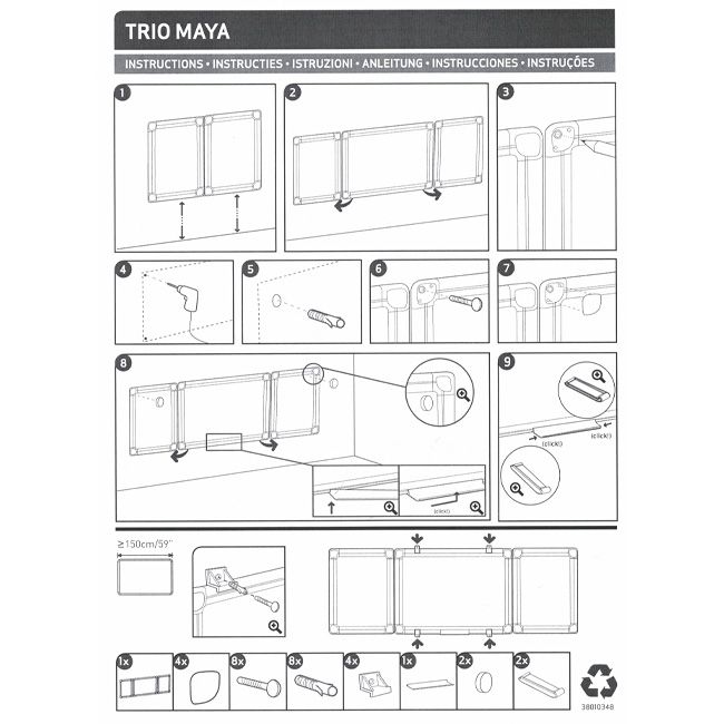 Тройна бяла дъска Bi-Office Магнитна с алуминиева рамка 120x240/120x480cm